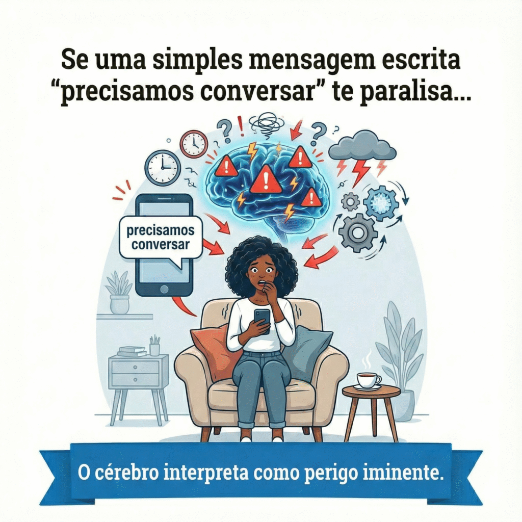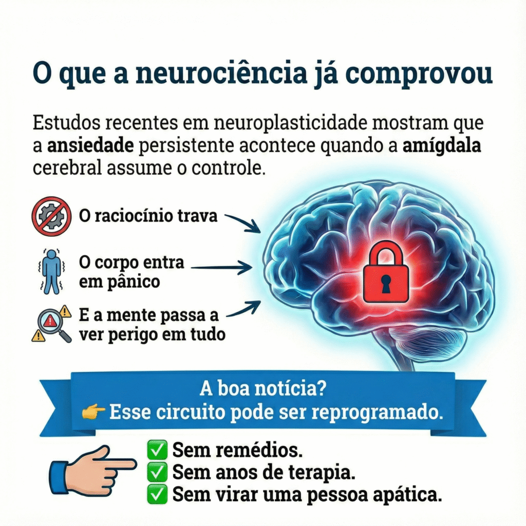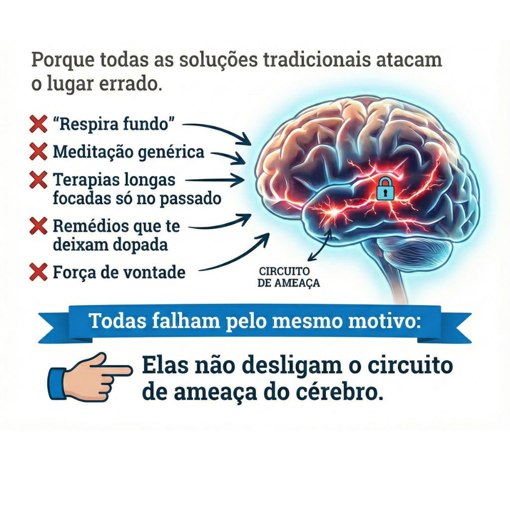 - Refém do Pânico: O coração dispara do nada e sua mente trava na "hora H" (reuniões ou conversas), fazendo você perder dinheiro e oportunidades de vida.